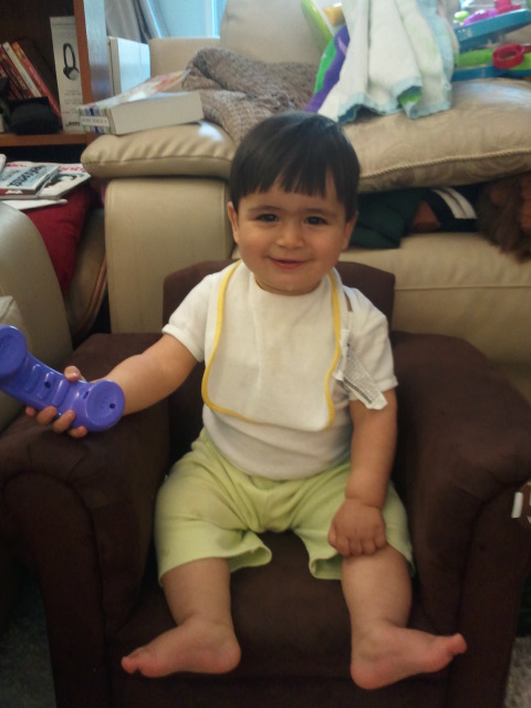 Plus today, while I was sitting next to you on the floor and talking with your Archie, I looked over at you and you had pulled yourself into a standing position with the sofa for the first time ever! You may have stood up once before, but it was while leaning over a box to get something on the other side, so Huma and I, who witnessed the event, weren’t sure it counted.